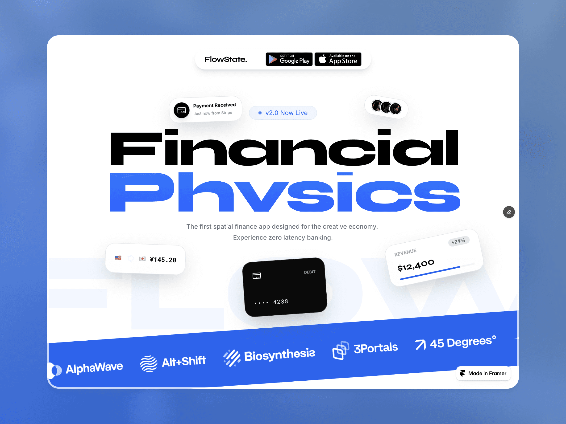FlowStateでフィンテックブランドを立ち上げましょう。空間的デザインと洗練されたUIを備えた、SaaS向けプレミアムFramerテンプレートです。